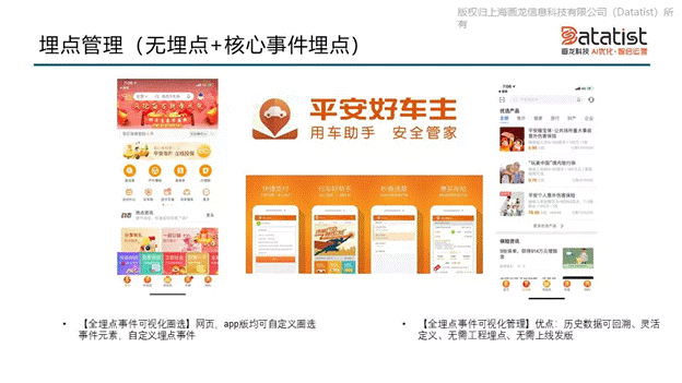 具体步骤如下,第一个环节是数据采集+埋点管理,在这边我们采用的是无埋点与核心事件埋点的结合。无埋点技术指的是,对所有页面元素进行自动埋点。但对于交易数据等核心数据,我们需要通过埋点来精准获取。