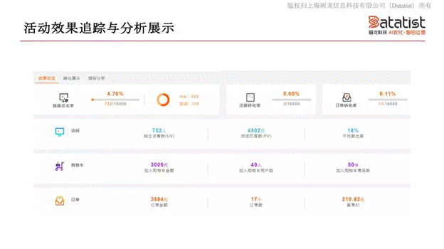 至于对象的选择,如图所示,都可以通过这里进行标签筛选,然后对它展开活动。活动内容,这边也可以做A/B测试,进行优化。最终,活动的效果要进行实时跟踪。