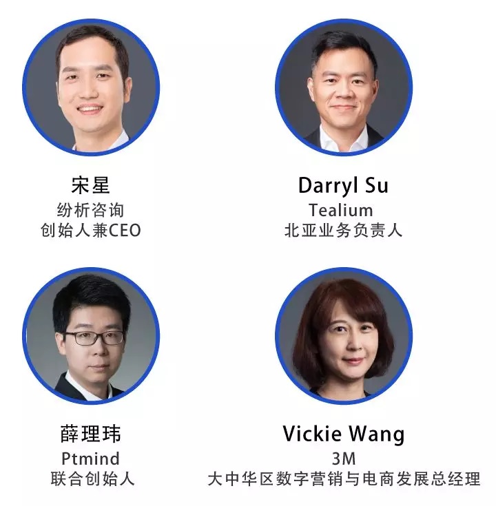 圆桌嘉宾:纷析咨询 创始人兼CEO 宋星、Tealium 北亚区销售总监 Darryl Su 、Ptmind 联合创始人 薛理玮、3M 大中华区数字营销与电商发展总经理 Vickie Wang