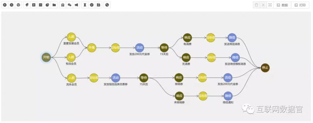 其自动营销流程可以由管理在后台自由添加或修改,以适应快速的市场变化、提高效率,其操作界面如下图所示: