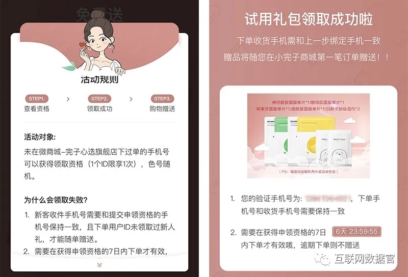 完美日记分别针对从线上旗舰店引流的粉丝、线下实体店扫码的会员做了不同的IP,大家知道分别是小完子和小美子,这两者的流程分别是这样的: