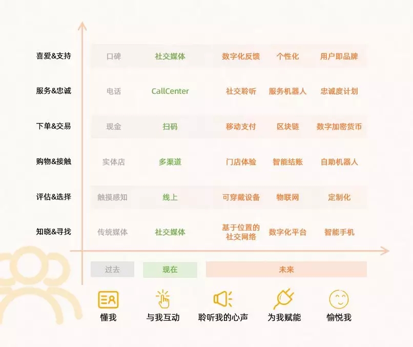 消费人群不断变化,消费偏好逐渐演变,消费科技也持续迭代,这一切都推动着消费品行业不断的自我颠覆。在过去的消费时代,品牌只需要通过传统媒体、传统线下门店及传统支付手段即可满足大部分客群的需求。到了现在,全渠道的发展,以及线上和社交媒体的触达方式则成了标配。而在未来,消费者需要的不只是高质量的商品或者服务,他们需要的是有“灵魂”的品牌,这个品牌不仅懂我,聆听我的心声,和我互动,同时还能够为我赋能,点亮我的生活。