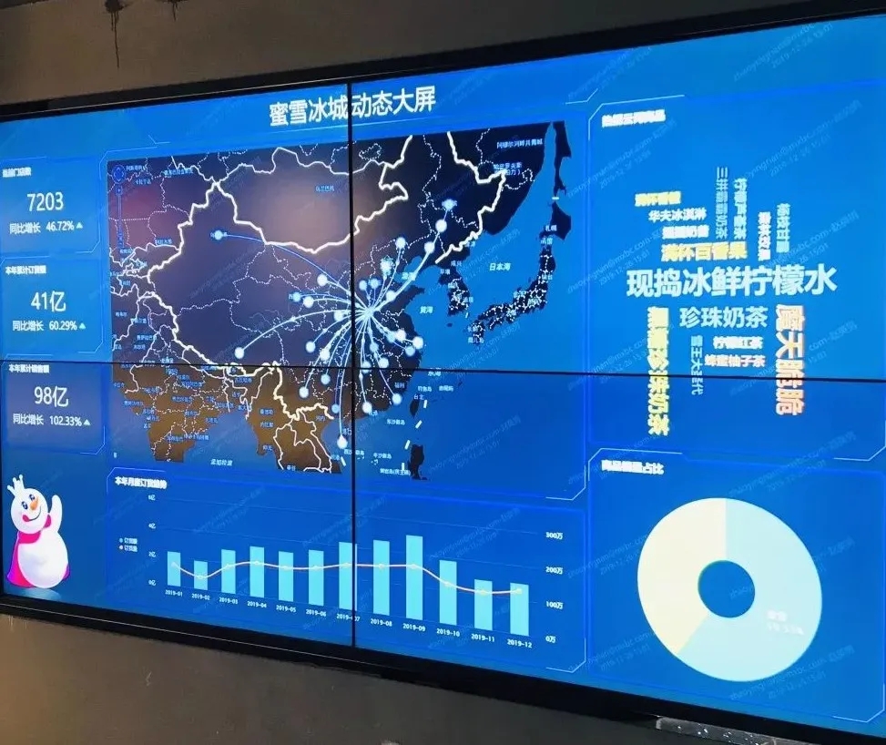 蜜雪冰城总部的动态数据大屏。效果图展示,非真实数据
