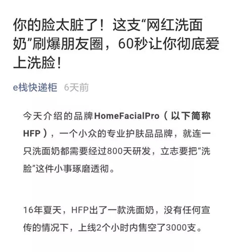 前一段时间,和一个朋友在聊天,他是一家公号机构老板,旗下公号粉丝过亿,大部分公号,都接过一个叫做HomeFacialPro(以下简称HFP)化妆品的投放,位置头条二条都有,但是如果是其他位置,则CPS结算。因为投放量比较大,又不停的优化,所以文案引流效果好。
