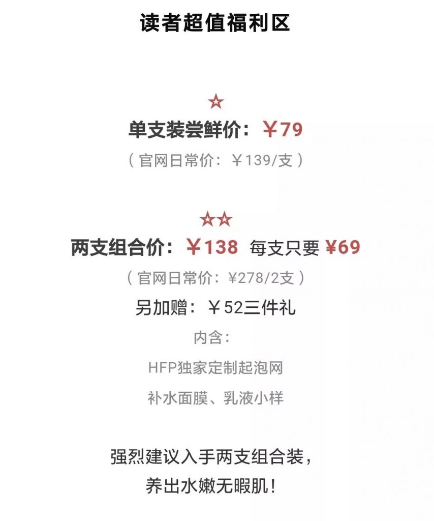 • 产品:HFP氨基酸洁面乳,售价单只79元,两只138元