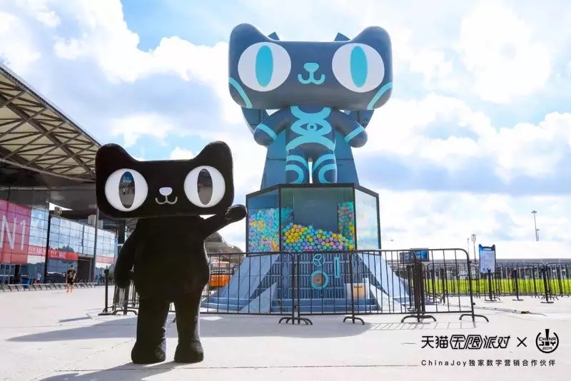 图为ChinaJoy现场天猫无限派对的巨型猫神扭蛋装置