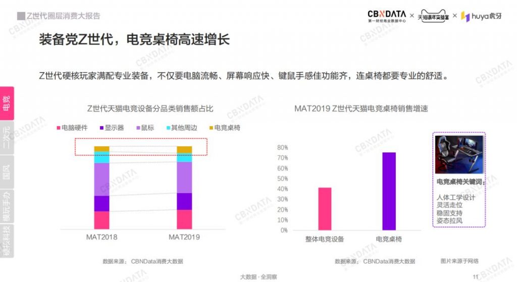 4)电竞圈巾帼不让须眉,2019购买电竞装备的Z世代女性玩家消费增速是男性用户的2倍