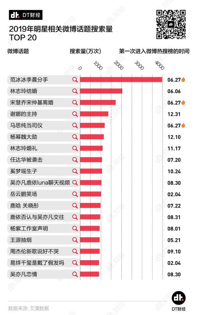 为了深入get微博热搜榜的常态,DT君联合艾漫数据收集了2019年的明星热搜数据,充分挖掘微博作为娱乐圈舆论场的特质。