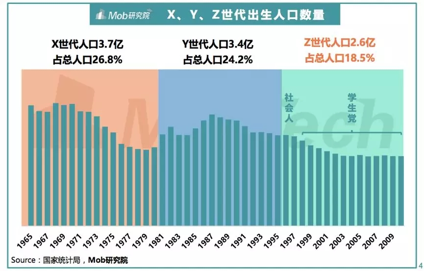 总体来看,Z世代是玩着智能手机长大的一群人,2.6亿的体量,占总人口的18.5%,被称为“明日之子”。