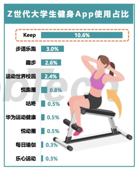 他们重视身材管理,高频使用健身、减肥等手机应用,其中KEEP独得恩宠。在北上广,每十个Z世代当中就有一个用KEEP 。其次轻牛、薄荷等减肥类App也比较受欢迎。