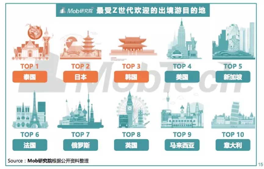 越来越多Z世代大学生选择出境游,近距离最受欢迎的境外目的地是泰、日、韩,景致丰富的欧美国家也很热门;