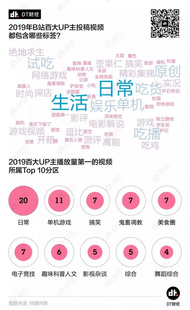 在B站公布的2019年百大UP主名单中,有34位来自于生活区,紧跟在生活区后面的是游戏区和鬼畜区。