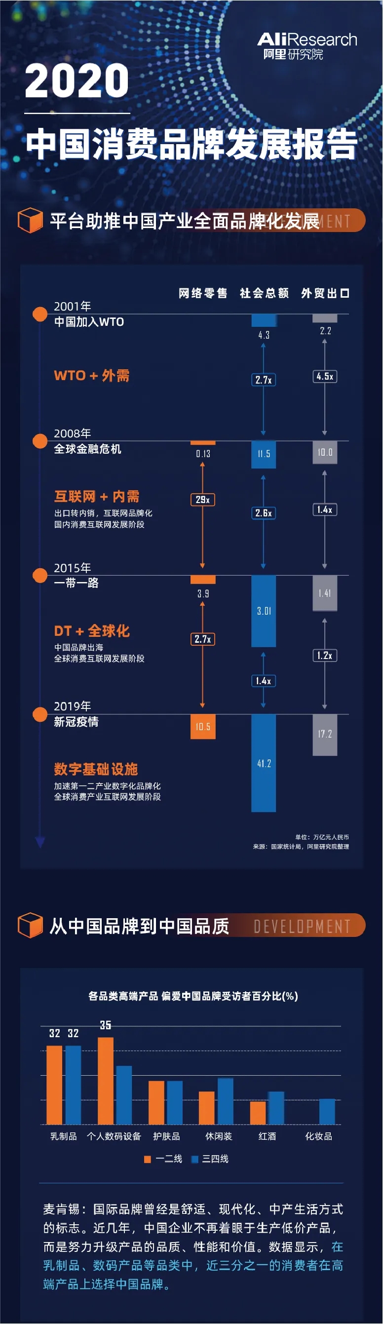 近年来中国品牌强势崛起,在第四个中国品牌日到来前夕,阿里研究院发布了《2020中国消费品牌发展报告》(关注本公众号,回复“2020中国消费品牌”,获取报告全文)。阿里研究院副院长安筱鹏在线分享中国消费品牌发展趋势洞察,以及中国消费品牌先行者的成功经验和启示,为中国消费品牌发展提供参考与借鉴。