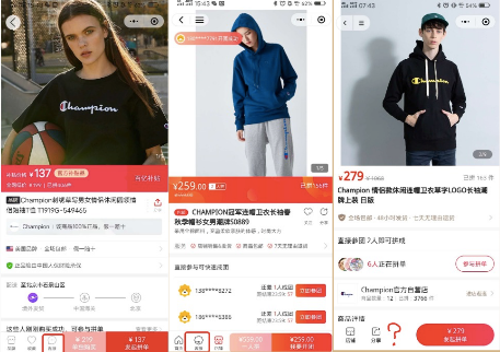 ▲(从左到右依次是苏宁拼购、小鹅拼拼、拼多多小程序主界面)