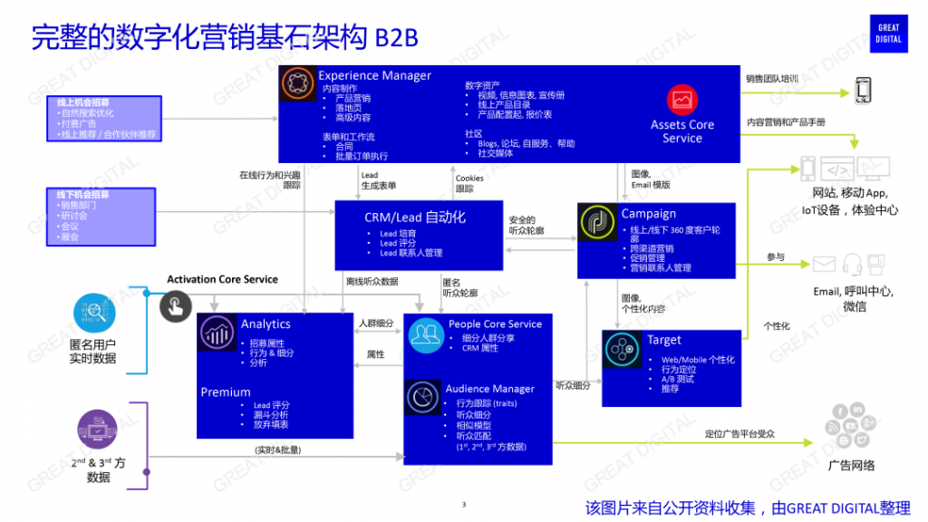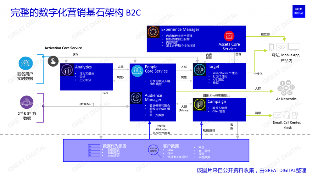 但需要指出的是,在实际情况中,企业更可能,也更有必要基于自身业务需求建筑一套定制化的营销技术架构,在各个模块采用合适的解决方案,有Adobe的,也有非Adobe的。