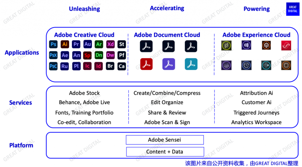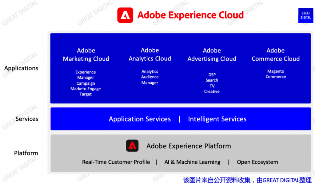 █ 营销服务层,包含Adobe独家的应用服务和智能服务,是一个可外延的生态服务。