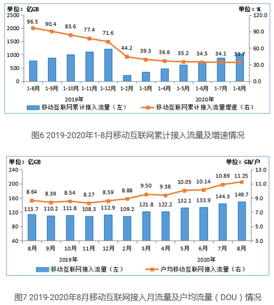 工信部:2020年1-8月移动互联网流量同比增长33.7%