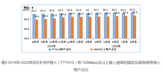- 固定宽带接入用户规模稳步增长,百兆固定宽带接入用户占比持续提升。