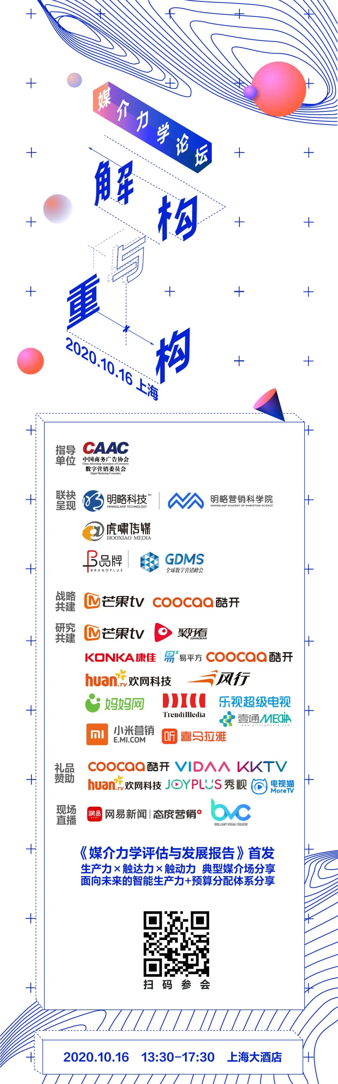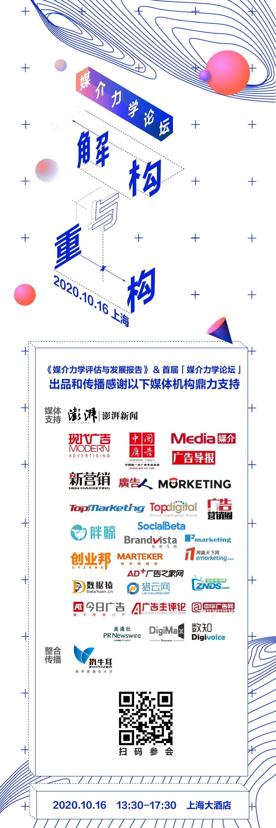 基于「媒介力学」概念框架,我们将联合行业力量出品《媒介力学评估与发展报告》,并计划于10月16日在上海举办首届「媒介力学论坛」。