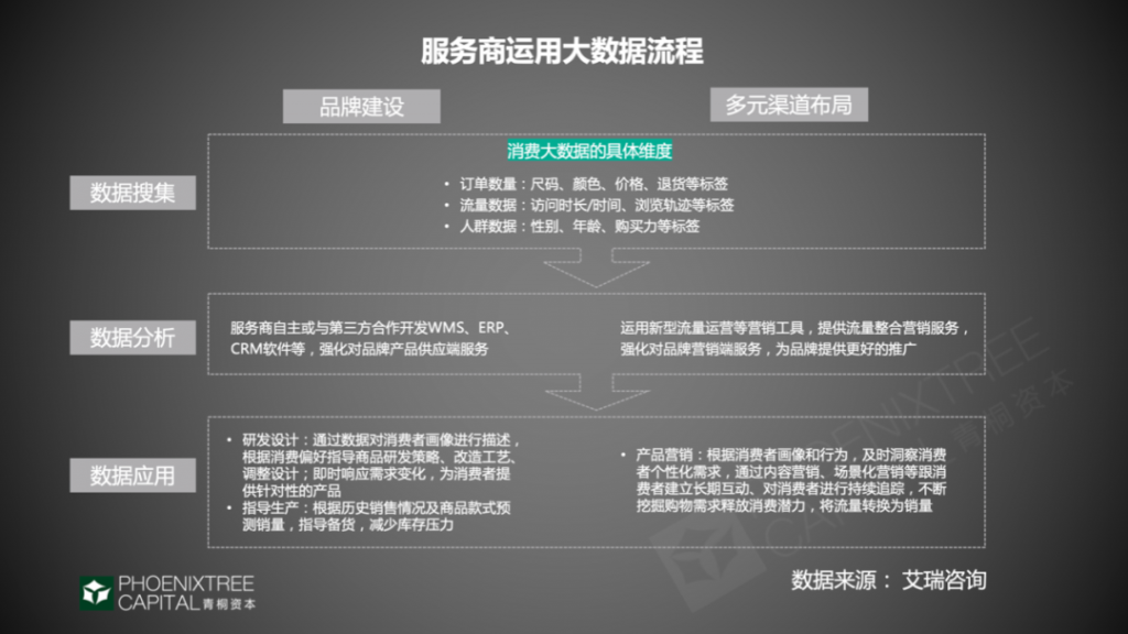 代运营企业拥有丰富的数据资源,凭借大数据技术,一方面,全面提升其业务能力,通过大数据指导,构建清晰的用户画像,使广告投放和营销更精准化,优化ROI,带动销量及GMV增长。从而形成竞争优势,建立新的壁垒。