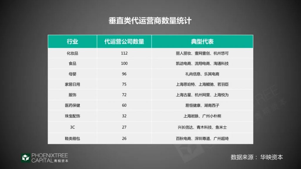 垂直类代运营公司聚集于高毛利品类。据华映资本统计,目前化妆品、食品及母婴,是代运营公司数量最多的3大品类,主要由于这些品类毛利相对高。