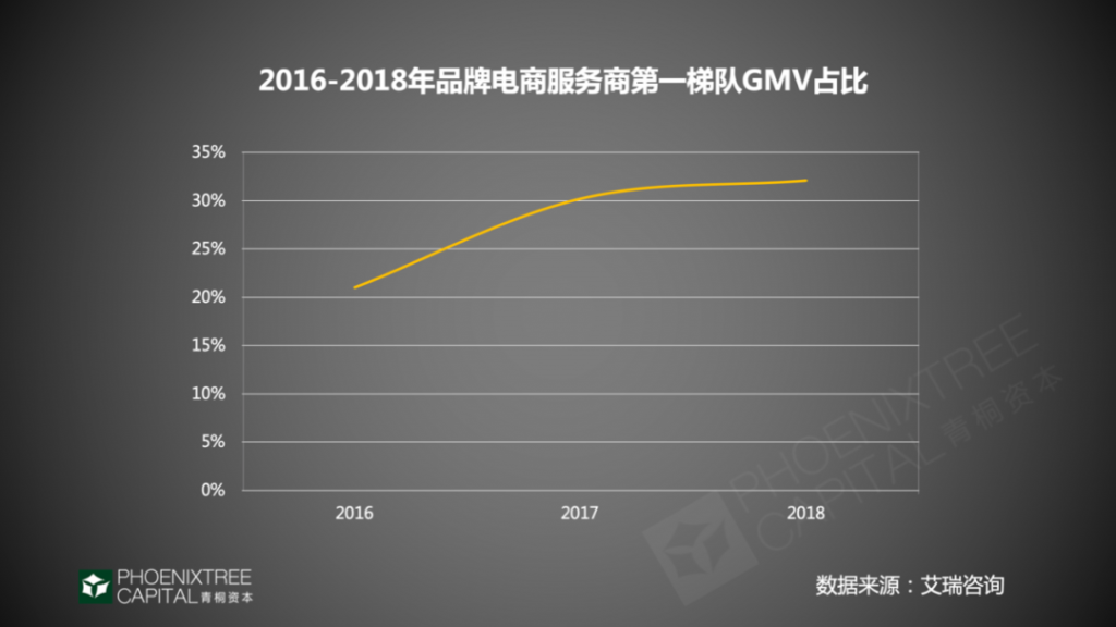 阿里头部代运营格局基本已定,全品类有宝尊电商、兴长信达、青木科技等,垂直类包括丽人丽妆、壹网壹创、百秋电商等。来自艾瑞咨询数据,2018年第一梯队代运营服务商,GMV总额占比为32.1%,该占比从2016-2018年持续攀升。