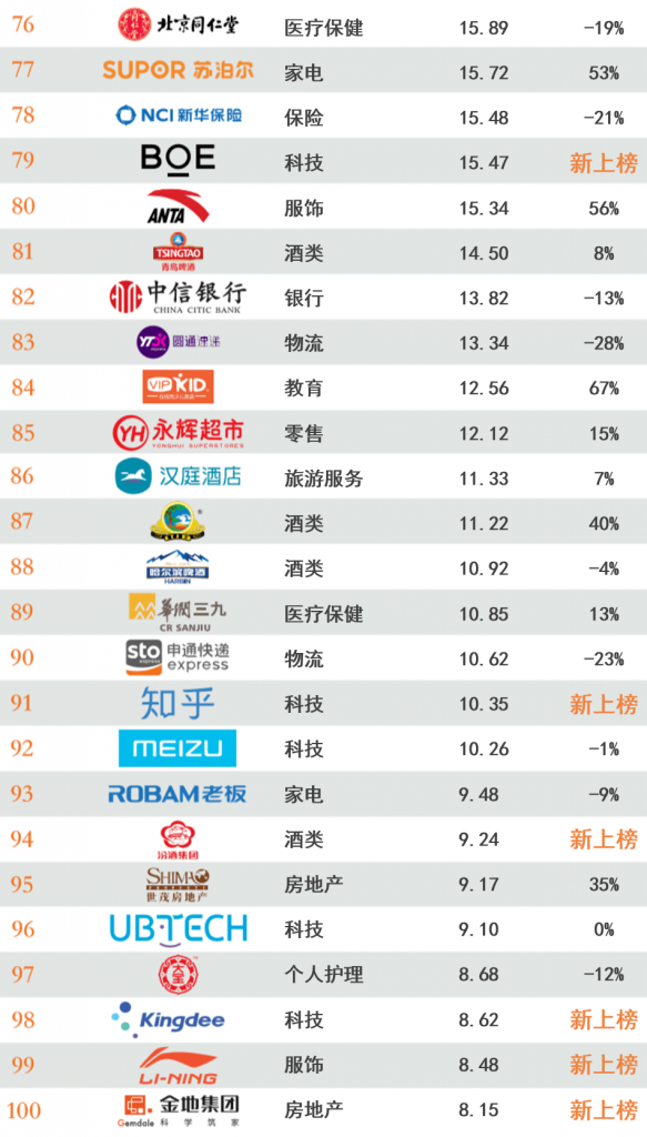 0540近日,WPP与凯度共同发布了2020年“BrandZ™最具价值中国品牌100强排行榜”。根据榜单,最具价值的100个中国品牌总价值达到9964亿美元,年同比上涨12%。显示出强势的品牌韧性以及打造和维持品牌价值的能力。 作为全球权威的大型品牌建设平台,BrandZ™研究对象是那些已经融入消费者日常生活之中的品牌,共覆盖51个国家和地区的市场。这项品牌估值研究采用了业内独有的调查方法,将全球380多万消费者的访谈结果与各家公司财务和经营业绩分析相结合。BrandZ™的排名研究机制综合考虑品牌的财务表现(根据彭博社的数据)以及根据消费者研究获得的品牌贡献值(Brand contribution index)。 榜单显示,阿里巴巴继续保持了中国最具价值品牌的地位,总价值达到1532亿美元,年同比增长9%;位列第二的腾讯总价值达到1510亿美元,同比增长9%;排名第三位的是茅台(增长47%,538亿美元),较2019年前进了两位。 排行榜的品牌估值调查采用了彭博社和Kantar Worldpanel的财务数据作为依据,同时还结合了通过访谈收集而来的40多万名中国消费者的观点看法。作为全球权威的大型品牌建设平台,BrandZ™研究对象是那些已经融入消费者日常生活之中的品牌,共覆盖51个国家和地区的市场。这项品牌估值研究采用了业内独有的调查方法,将全球380多万消费者的访谈结果与各家公司财务和经营业绩分析相结合。BrandZ™的排名研究机制综合考虑品牌的财务表现(根据彭博社的数据)以及根据消费者研究获得的品牌贡献值(Brand contribution index)。 BrandZ™榜单一共考察了24个品类,其中科技品牌贡献了100强总价值的25%,零售品类贡献了19%,生活方式平台的占比为4%,在24个品类中,共有14个品类的品牌价值实现了增长。 此外今年十周年特辑的发布正遇上了新冠疫情爆发,这是品牌价值稳步增长转型十年和后疫情时代“新常态”之间的转折点。由于新冠疫情导致的居家防疫,增加了人们的上网时间,文化娱乐品类又一次成了价值增长最多的品类,价值大增221%,而疫情期间在线教育的普及,也让教育品类的价值大涨了92%。 中国品牌继续追求全球增长,并迅速扩大其国际影响力和地位。在“2006年最具价值全球品牌100强排行榜”中,仅中国移动一个品牌上榜。“2020年最具价值全球品牌100强排行榜”中有17个中国品牌,比去年增加了两个,成为上榜品牌数量排名第二的国家,位于拥有51个上榜品牌的第一名美国之后,高于拥有八个上榜品牌的德国。中国上榜品牌的合计价值增长了16%,几乎是全球品牌增速的三倍。 此外,BrandZ™最具价值中国品牌100强股票组合过去十年间增长145.3%,是摩根士丹利资本国际中国指数(MSCI China Index)增长40.4%的三倍以上。 关于DigiMax DigiMax有趣,新鲜的数字营销行业热点,一网打尽! 订阅号-每日尝鲜