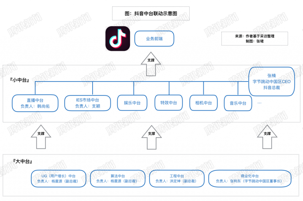 前端只是这场战役的局部。站在潮流产品抖音背后,字节跳动依赖“中台”运转。