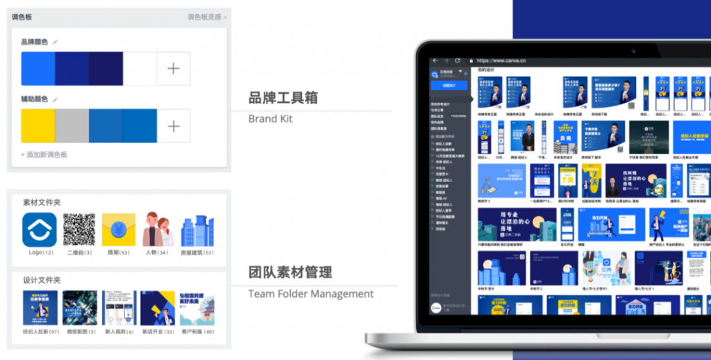 - 设计小白友好:大部分经纪人和店东是不会使用专业设计软件的,Canva拖拽式的设计方式,让设计小白都能够轻松使用,在团队内部推进起来接受度很高。