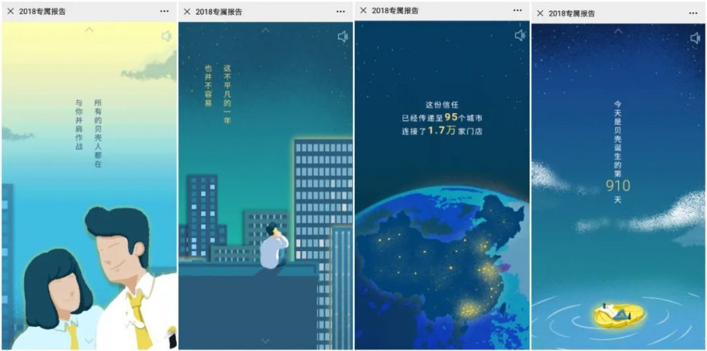 除了与消费者之间的沟通外,贝壳也花了很多心思在经纪人的情感维系上,比如这个感人的年度总结H5,也是通过人物插画的形式去体现的。
