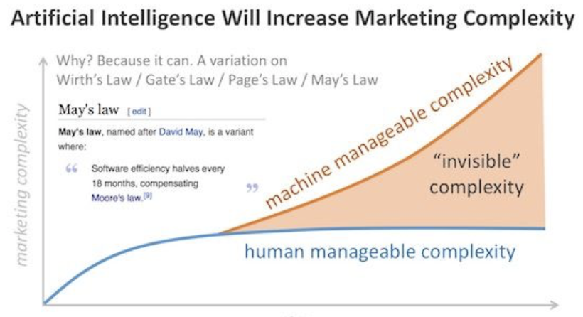市面上的流行观点和我的分歧就在于此:我不相信 AI 会让营销简单化。相反,我认为 AI 会以颠覆性的方式,让营销(商业)的复杂性呈指数型增加。