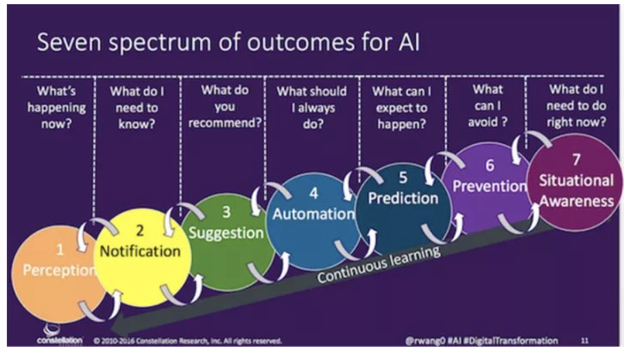 我喜欢分析师 Ray Wang 提出的有关 AI 所能交付结果的框架: