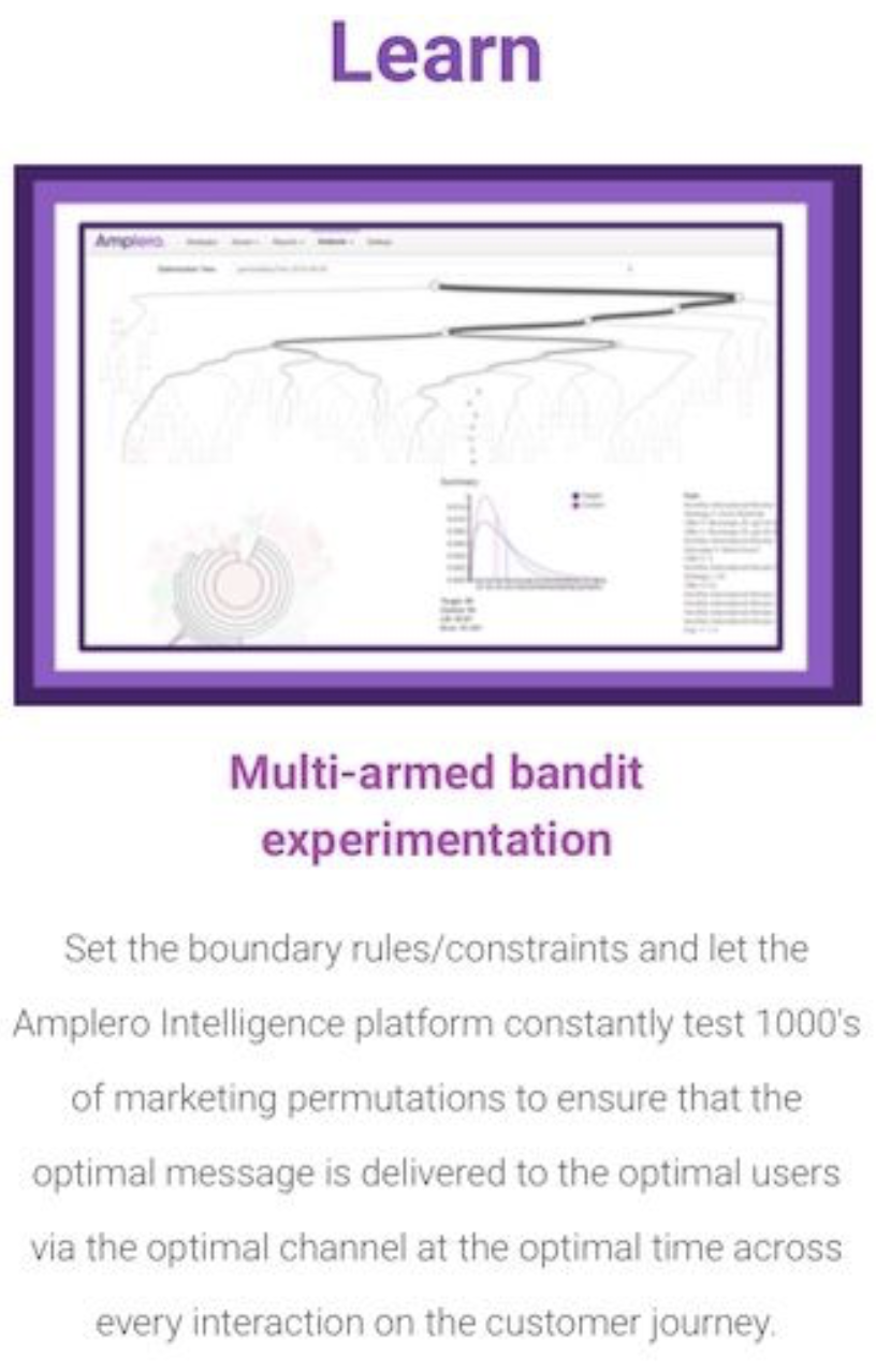 再强调一次,这并不是假设。以 AI 驱动的营销优化产品 Amplero 为例,它自称可以通过多臂老虎机实验,持续测试 1000 多个营销排列组合。