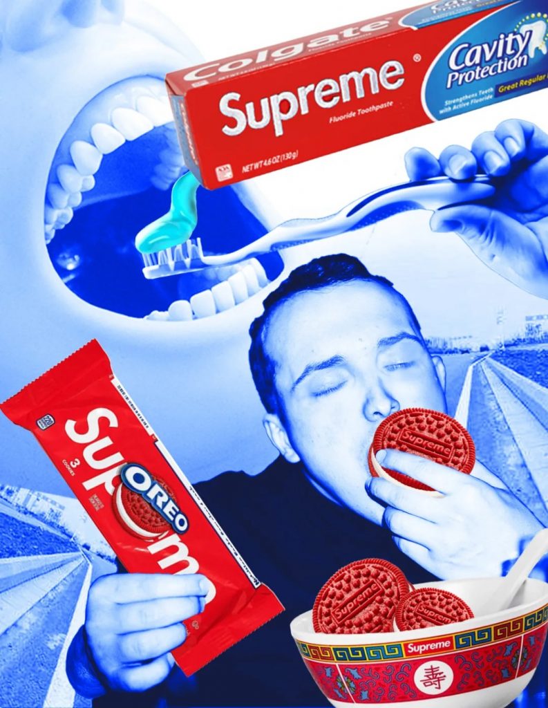 照这么说,那Supreme世界里的板仔,应该也会用高露洁的牙膏刷干净牙齿,然后坐在马路牙子上用长寿碗吃奥利奥。