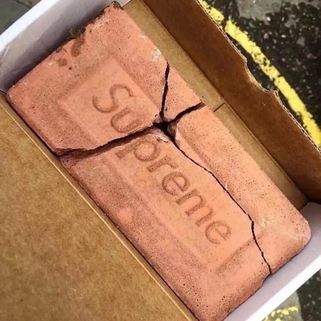 你可以真的带着Supreme的撬棍走在街头,用Bic联名的打火机点燃你放在Miro Case里的大麻,一切都是反叛的象征,所以包里揣一块Supreme的砖也很合理。