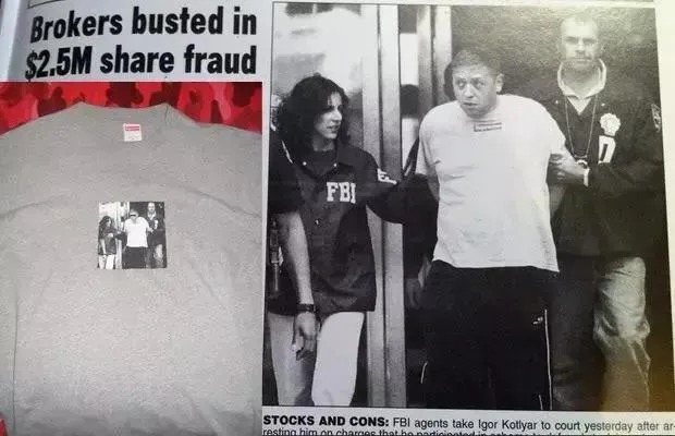 2003年,金融经纪人Igor Kotlyar因为金融诈骗被FBI逮捕的时候,正好穿着Supreme经典的Box LogoT恤。