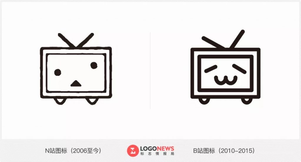 在2015年之前,b站的LOGO主色调为黑色,其图标则是个双线条的卡通电视图标,当时的图标造型几乎照搬了N站。
