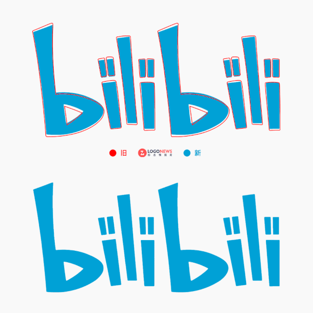 可以看到,「bilibili」字体造型基本没变,而是将部分笔画给拉直了。