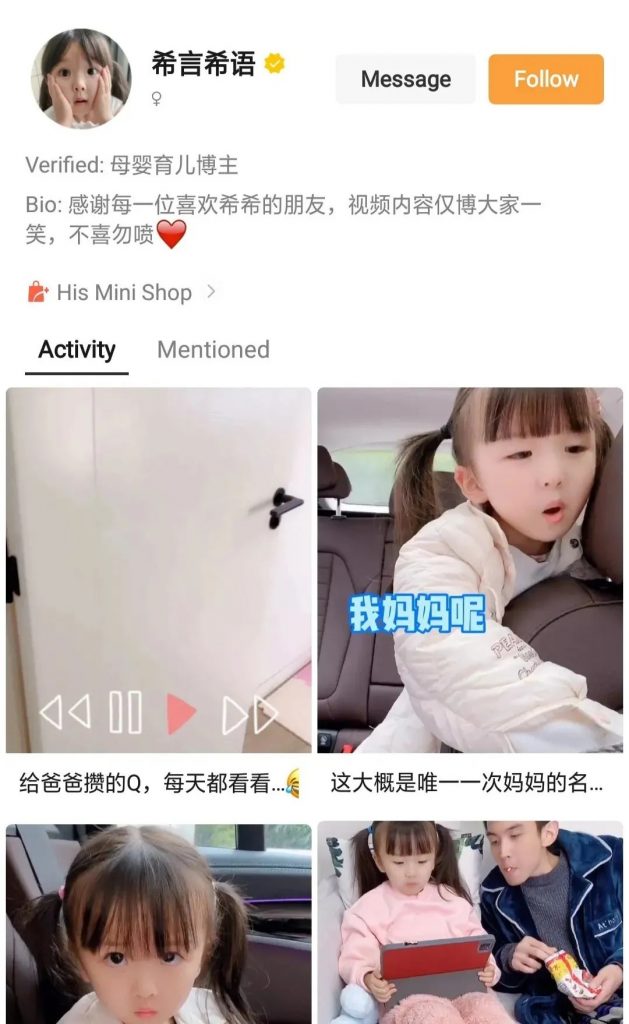 该视频号内容主体为小女孩儿希希,以希希和父母之间颇具戏剧性的互动为主,偶尔其父亲会跟着出镜,小女孩平时生活中的乖巧、古灵精怪的瞬间被记录下来并分享给大众。