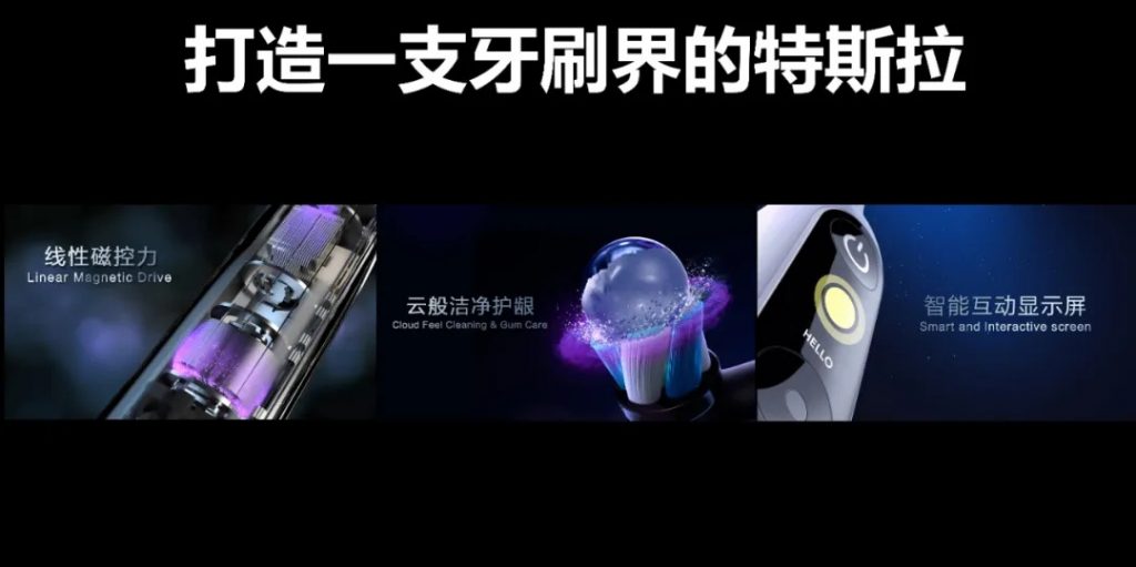 在电动牙刷界,能不能像汽车界里面的特斯拉一样安静,加速又安静的产品?所以OralB研发团队的同学花了很大的工夫去打造这款产品,最后他们做出了这款新产品“OralB云感刷牙刷”,利用了德国磁悬浮科技,做了3700多根刷毛,保证能够刷到牙齿的每个部位。