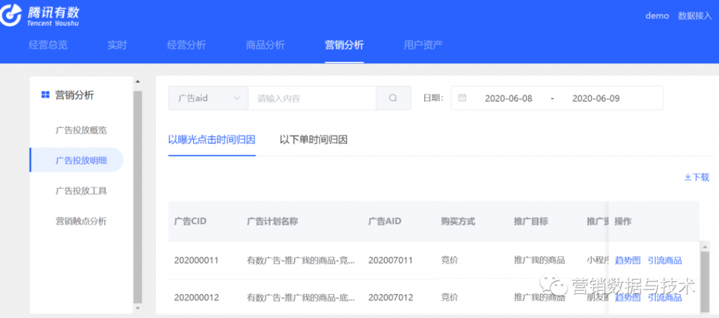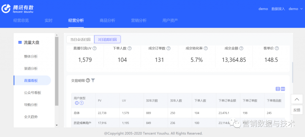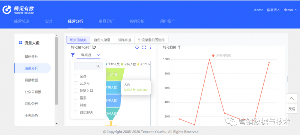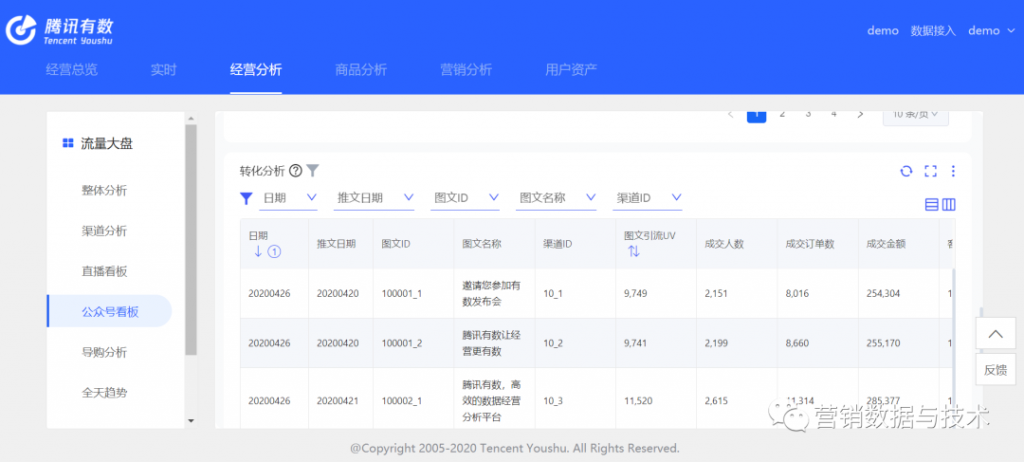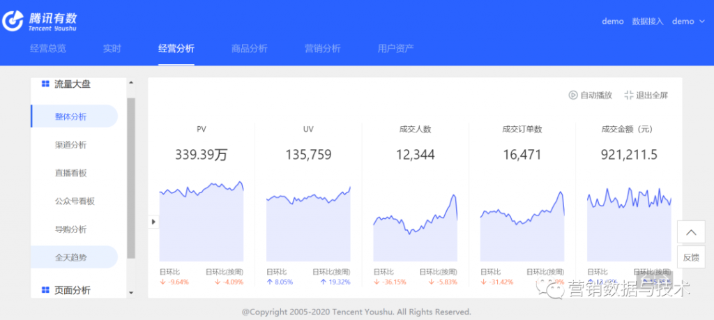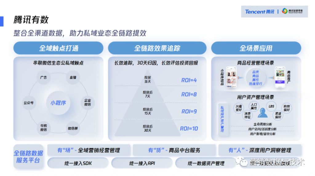 支持串联品牌在腾讯微信生态里公域+私域所有触点的数据: