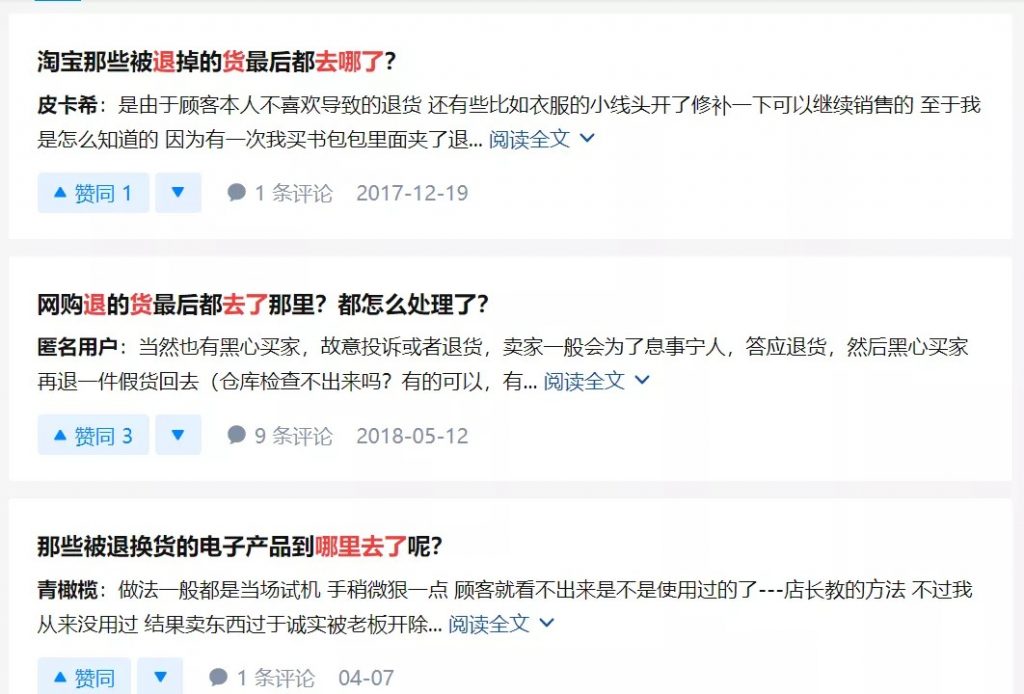 (知乎上有许多讨论退货的话题)