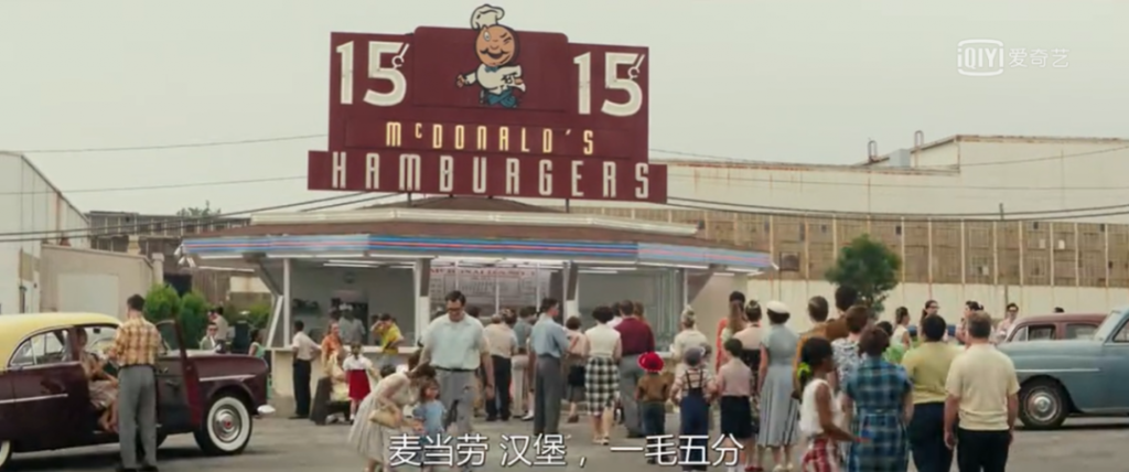电影中的麦当劳第一家门店,顾客需要自行下车排队取餐 图片来源:电影《大创业家》