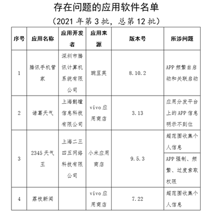 3月12日 工信部发布侵害用户权益行为APP通报,腾讯手机管家、荔枝新闻在列