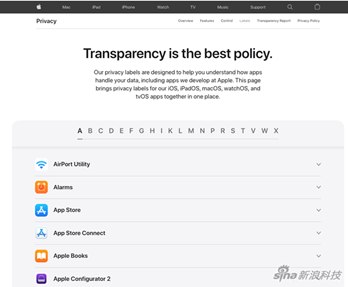 - 苹果官网上线新页面列出所有自家App的隐私标签