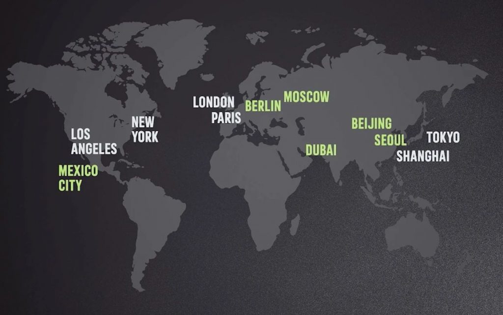 而在这一次五年计划中,adidas 又新增了 6 个关键城市:北京、首尔、迪拜、莫斯科、柏林、墨西哥城。于是一共定下了 12 个「超级城市」。