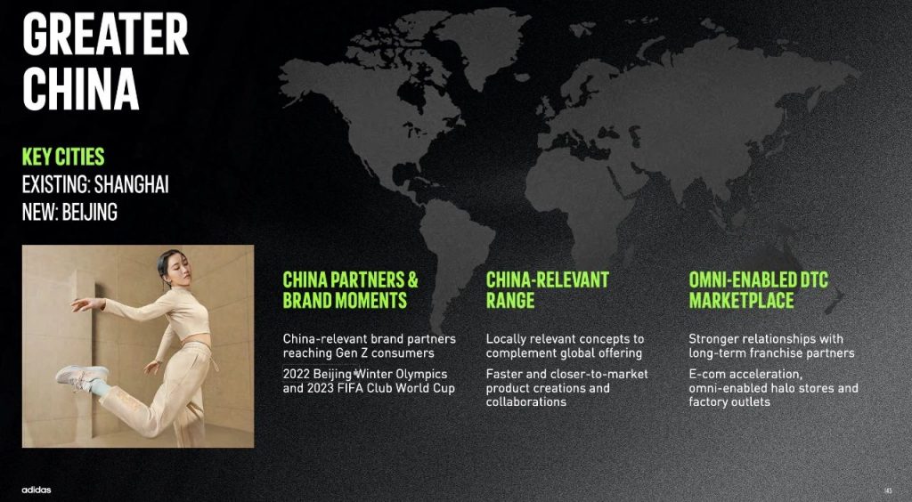 adidas 提到,大中华区会是下个五年中增长最快的市场。针对大中华区,adidas 将会推出更多本地概念的产品、寻找面向 Z 世代的品牌伙伴,以及加速推进电商、halo 门店、工厂店的全渠道零售。