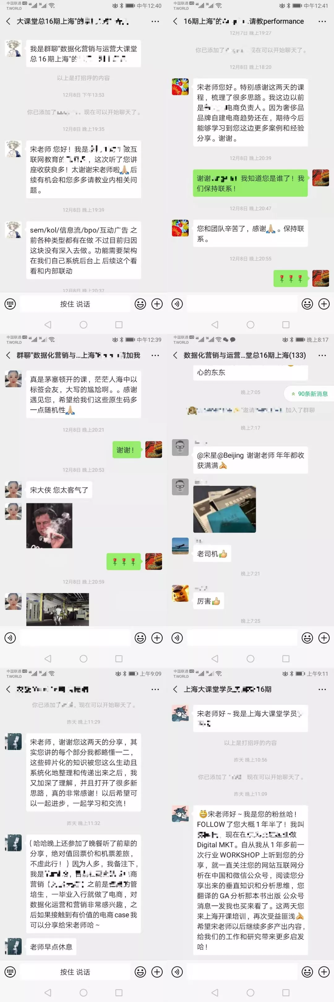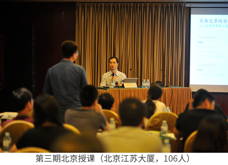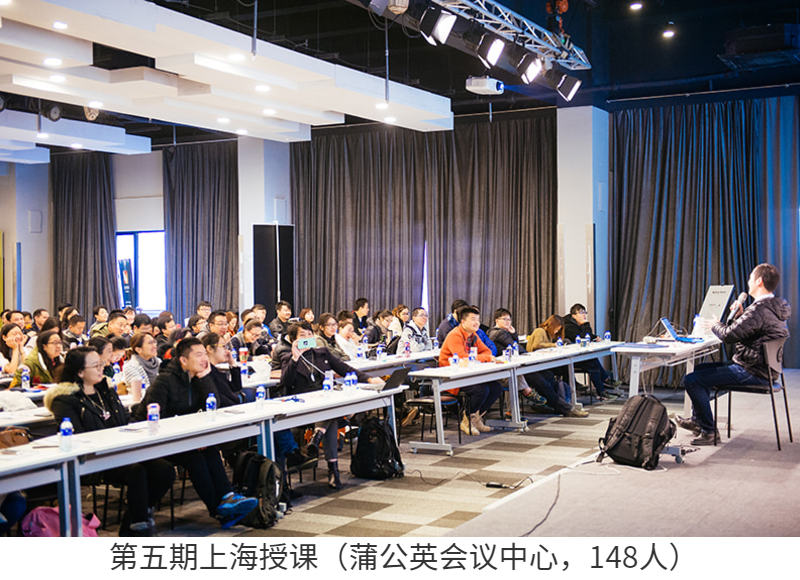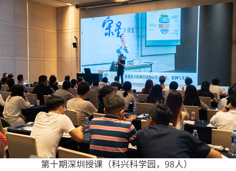 宋星全程讲授的公开课《数据驱动的互联网营销和运营大课堂》在2016年5月到2021年1月的5年时间内,在北京、上海、深圳、广州和台北等地,一共开设21场,场均超过120人。