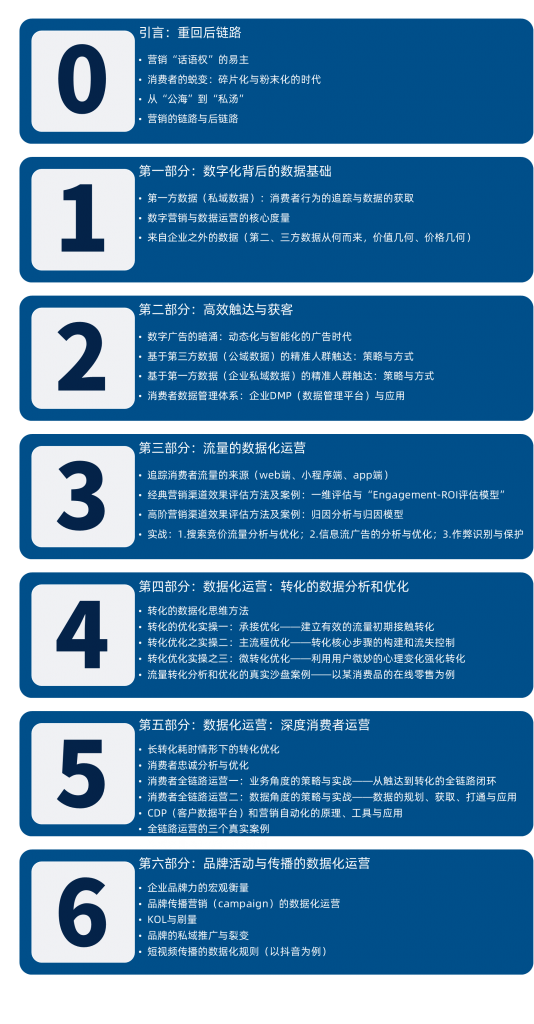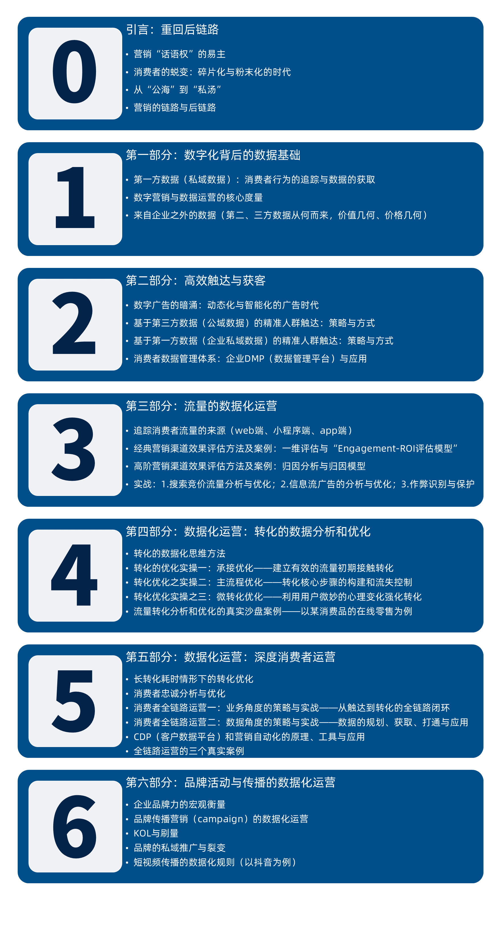 课程吸收了前21期同学们的诸多反馈,最新的这次升级,内容会更加聚焦于大家最关心的内容:数据与其应用场景的结合、数据对效果的优化、数据在营销和运营上深入的应用,更多的实操以及当前行业主流的发展热点与趋势。