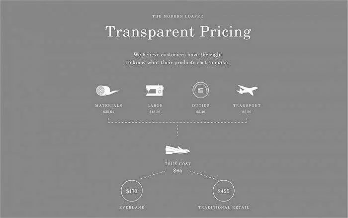 Everlane 最具特色的地方,就是它们一直推崇的「极致透明」(Radical Transparency)原则。